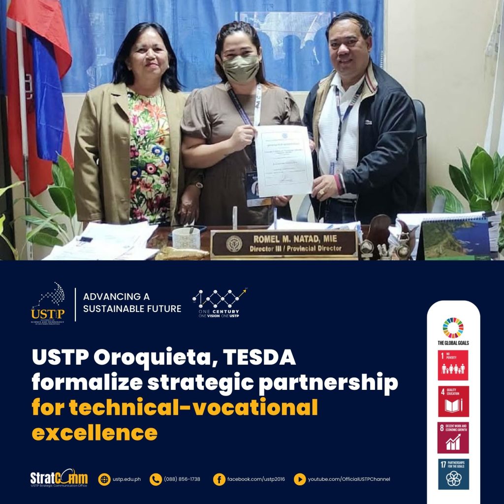 The University of Science and Technology of Southern Philippines (USTP) is a state university established on August 16, 2016, by virtue of Republic Act 10919 through the amalgamation of the Mindanao University of Science and Technology (MUST) in Cagayan de Oro City, Misamis Oriental and the Misamis Oriental State College of Agriculture and Technology (MOSCAT) in Claveria, Misamis Oriental. It is located in Northern Mindanao, the Gateway to Mindanao, which offers a strategic locational advantage for the institution to train and develop students from all the other regions.