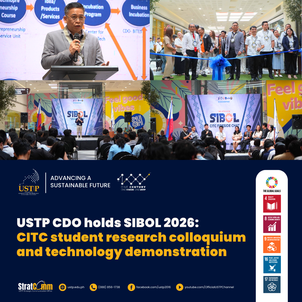 USTP CDO holds SIBOL 2026: CITC student research colloquium and technology demonstration By Randulf C. Doria and Roque P. Bermudez, STRATCOMM, USTP System Share: The College of Information Technology and […]