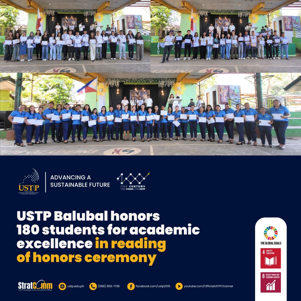 USTP Balubal honors 180 students for academic excellence in reading of honors ceremony