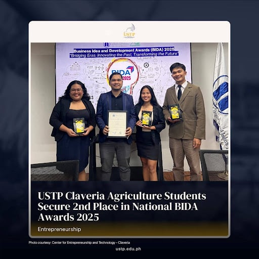 Agriculture students from the University of Science and Technology of Southern Philippines in Claveria, Misamis Oriental (USTP Claveria) secured second place in the Agriculture Category of the 19th Business Idea and Development Awards (BIDA) 2025, held on September 29, 2025, at the SMX Convention Center, Pasay City.
