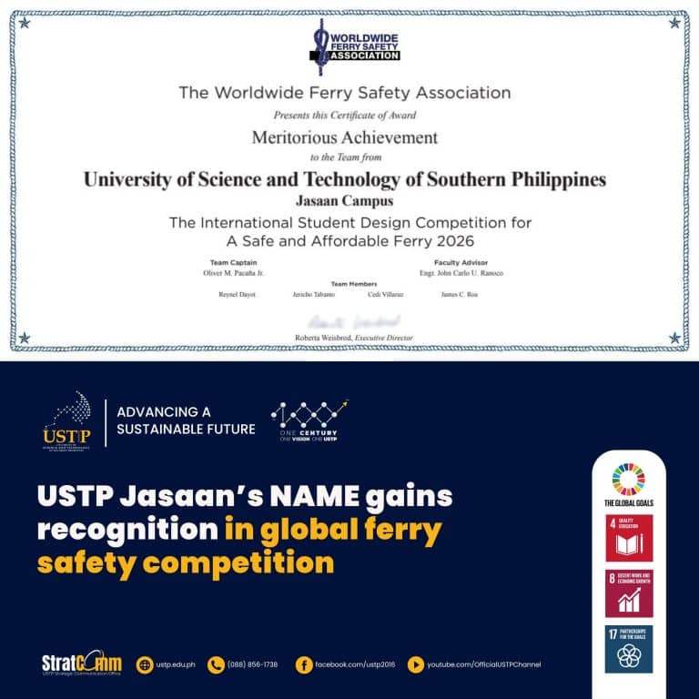 The University of Science and Technology of Southern Philippines (USTP) is a state university established on August 16, 2016 by virtue of Republic Act 10919 through the amalgamation of the Mindanao University of Science and Technology (MUST) in Cagayan de Oro City, Misamis Oriental and the Misamis Oriental State College of Agriculture and Technology (MOSCAT) in Claveria, Misamis Oriental. Both campuses are located in Northern Mindanao, the Gateway to Mindanao, which offers a strategic locational advantage for the institution to train and develop students from all the other regions of Mindanao.