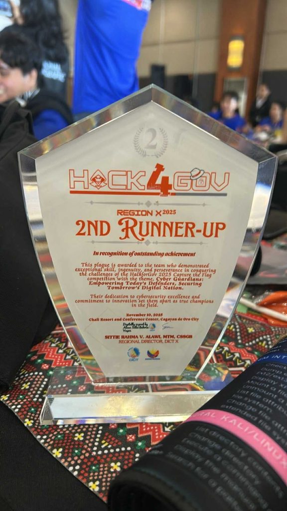 The University of Science and Technology of Southern Philippines in Alubijid, Misamis Oriental (USTP Main Campus – Alubijid) proudly celebrates the success of Team CyberBabies, who secured 2nd Place in the Hack4Gov 2025: Capture-The-Flag (CTF) Regional Competition organized by the Department of Information and Communications Technology Region 10 (DICT-10) on November 10, 2025, at the Chali Beach Resort, Brgy. Cugman, Cagayan de Oro City.