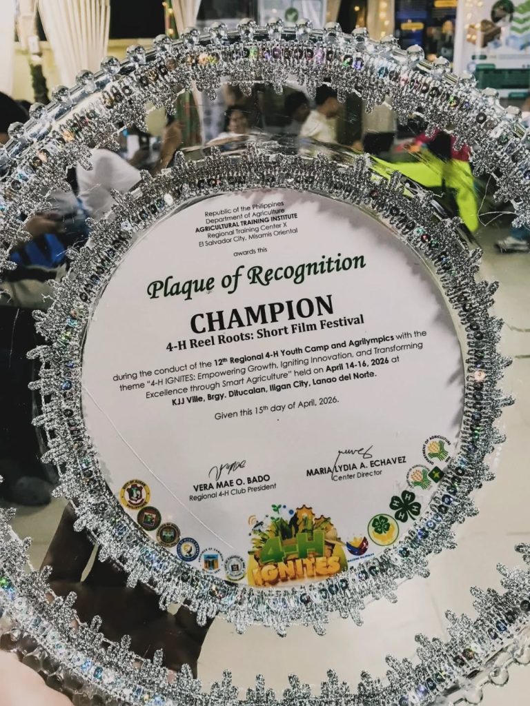 Students from the University of Science and Technology of Southern Philippines in Balubal, Cagayan de Oro (USTP Balubal), brought pride to the university as Bachelor of Science in Agriculture (BSA) students Jamerex C. Quinco and Ivan Charles S. Alconde emerged as Regional Champions in the 4-H Reel Roots: Short Film Festival, held from April 14 to 16, 2026, in Ditucalan, Iligan City, as part of the 12th Regional 4-H Youth Camp and Agrilympics at KJJ Ville, Barangay Ditucalan.