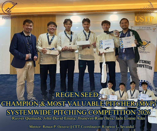 Adding to the team’s remarkable achievement, Mr. Rayver Quimada was recognized as the Most Valuable Pitcher (MVP) of the competition. His outstanding delivery, confidence, and mastery of the proposal earned praise from the panel of judges and solidified his role as a key driver of the team’s success. The victory was further strengthened by the steadfast mentorship and guidance of Mr. Renan Octavio and Mr. Rosewin L. Sevandal, CET Campus Coordinator, whose expertise and support played a vital role in refining the team’s pitch and preparing them for the competition.This milestone victory not only underscores the innovative spirit and academic excellence of USTP Claveria but also highlights the institution’s commitment to nurturing future-ready entrepreneurs and changemakers. The success of the RegenSeed Team serves as an inspiration to students across the university to pursue bold ideas and transformative solutions.