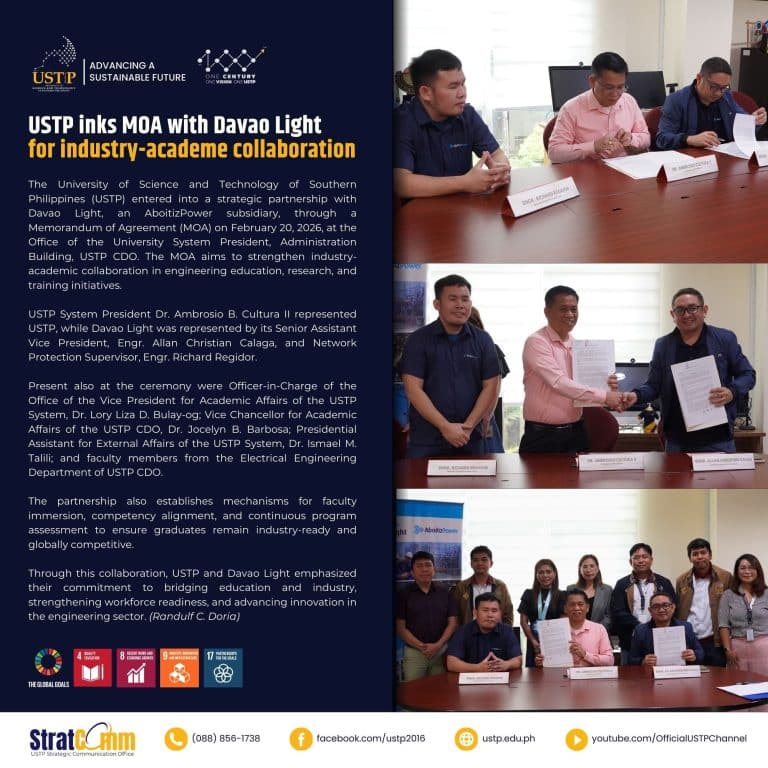 USTP inks MOA with Davao Light for industry-academe collaboration
