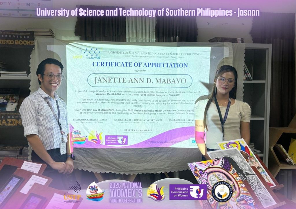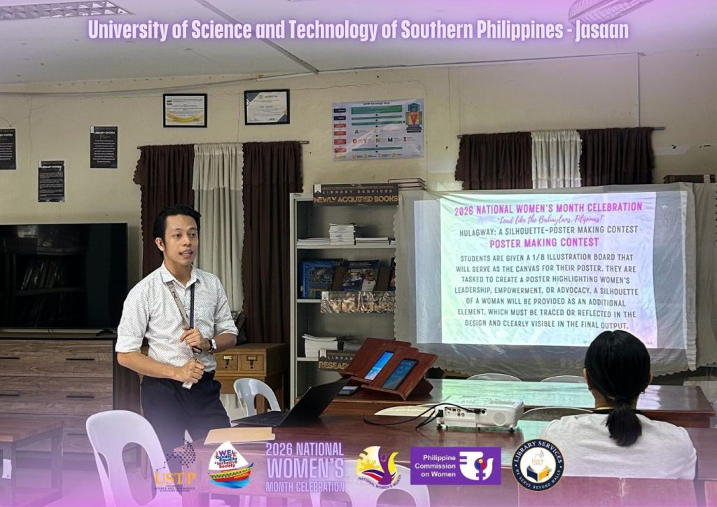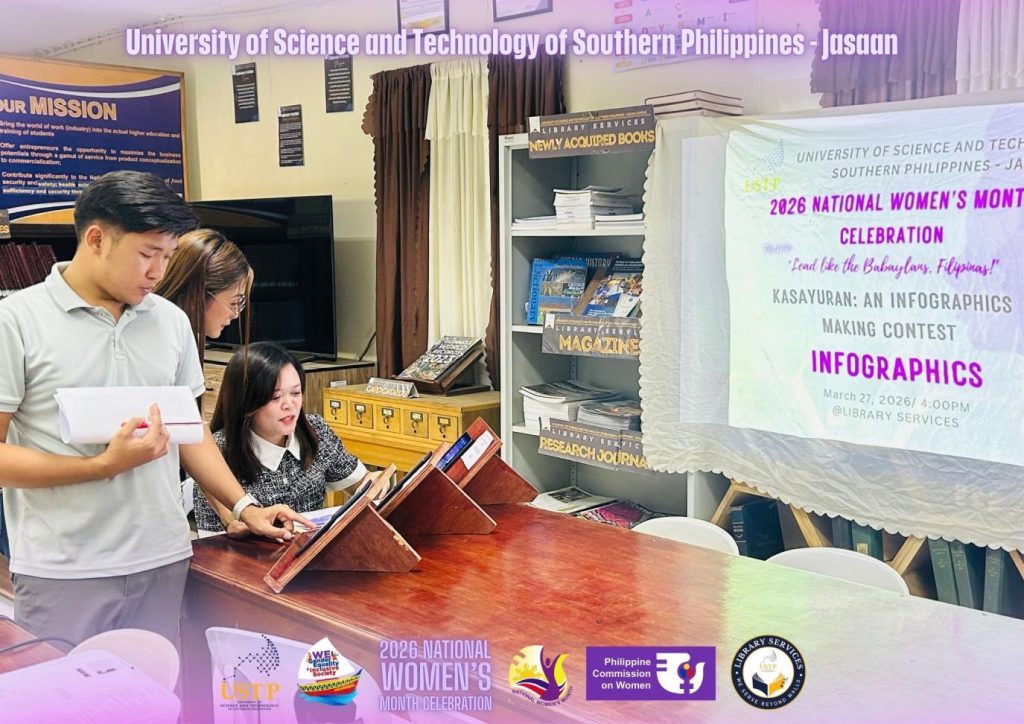 Culminating the 2026 National Women’s Month celebration, the Library Services of the University of Science and Technology of Southern Philippines in Jasaan, Misamis Oriental (USTP Jasaan), in collaboration with the Gender and Development (GAD) Unit, conducted a series of student-centered activities from March 24 to 27, 2026, anchored on the theme “Lead like the Babaylans: Filipinas!”