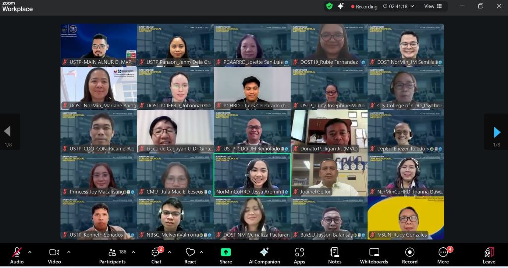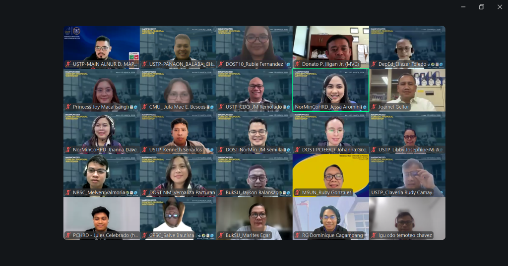 Faculty researchers from the University of Science and Technology of Southern Philippines in Panaon, Misamis Occidental (USTP Panaon), participated in the Harmonized Concept Proposal Writeshop on March 3, 2026, held via Zoom. The event guided researchers in developing responsive, competitive, and fundable proposals aligned with the Department of Science and Technology’s (DOST) Harmonized National Research and Development Agenda (HNRDA).