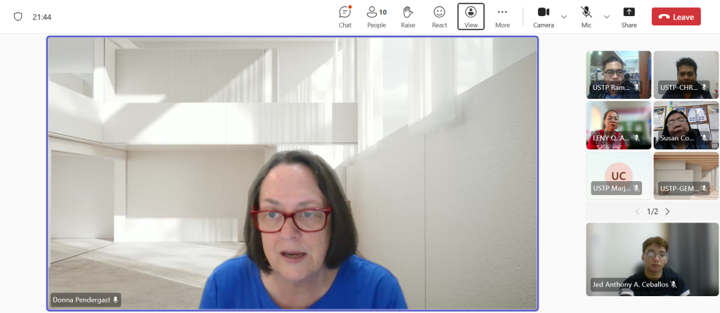 Representing USTP were Acting Campus Director Dr. Leny Q. Anasco; Director for Global Engagement Dr. Ramir Philip Jones V. Sonsona; Engr. Sprinztsie Maye T. Garrucha; Dr. Susan C. Comaling; and faculty members Christopher R. Balaba, Mary Jane A. Moralia, Jed Anthony A. Ceballos, and Ms. Marjho Mae S. Cardoza. Griffith University was represented by Director for Engagement Professor Donna Pendergast AM.