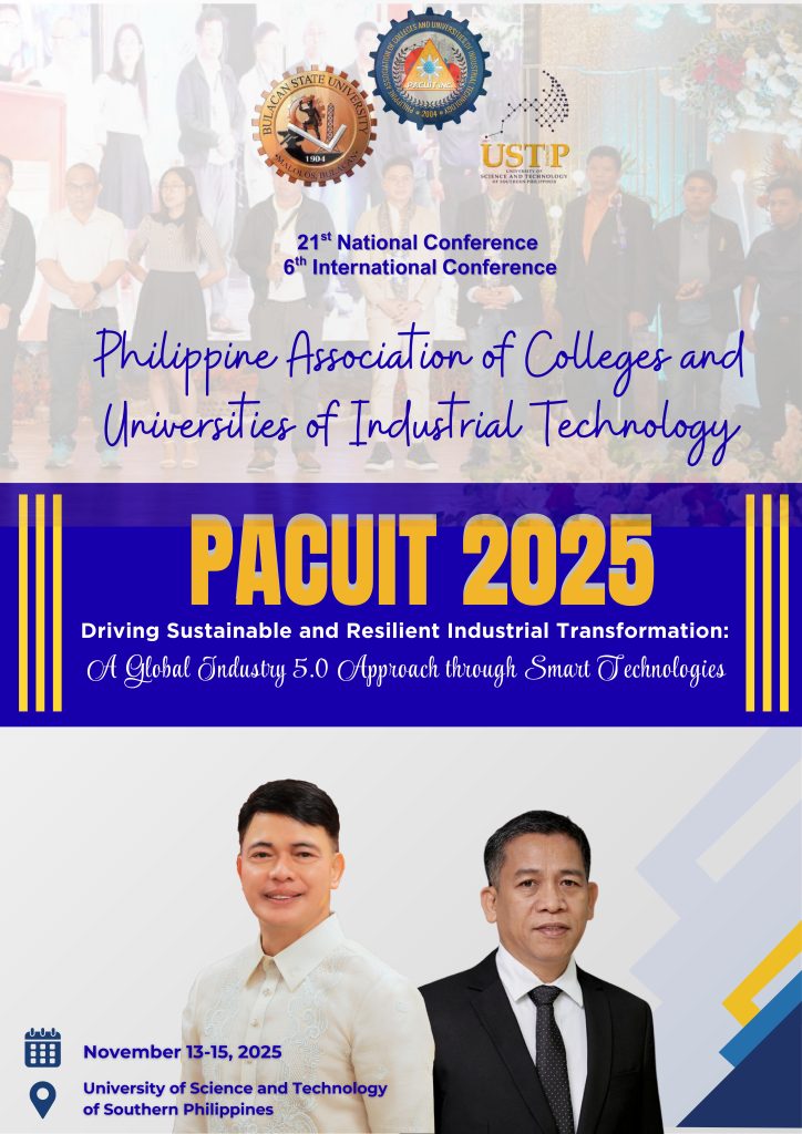 PACUIT 2025 is organized by the Philippine Association of Colleges and Universities of Industrial Technology (PACUIT), Inc., in partnership with Bulacan State University (BulSU) and the University of Science and Technology of Southern Philippines (USTP).